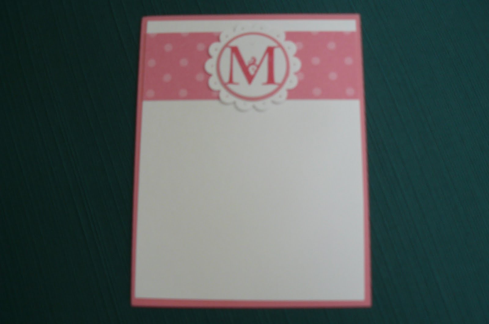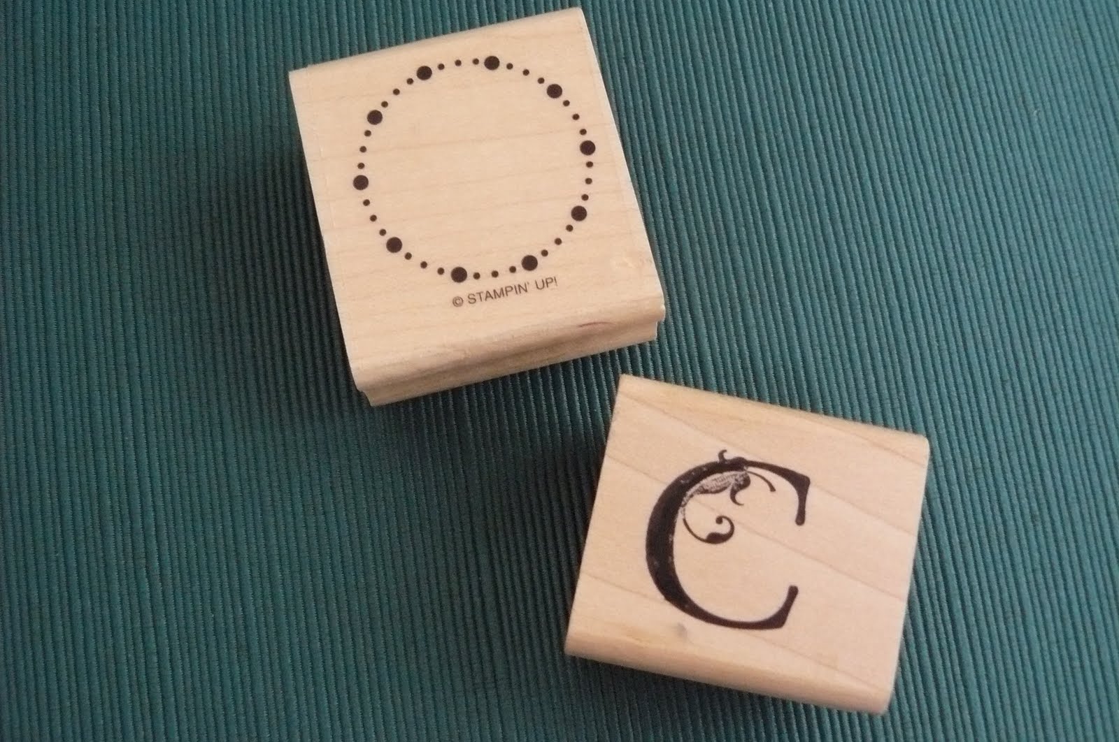 Finally, some stamping! I used the Lovely Letters stamp set to make my monograms. The outside circle that encircles the monogram is from the Circle Circus stamp set. Generally, it was a perfect fit. The “M” gave me a little grief!