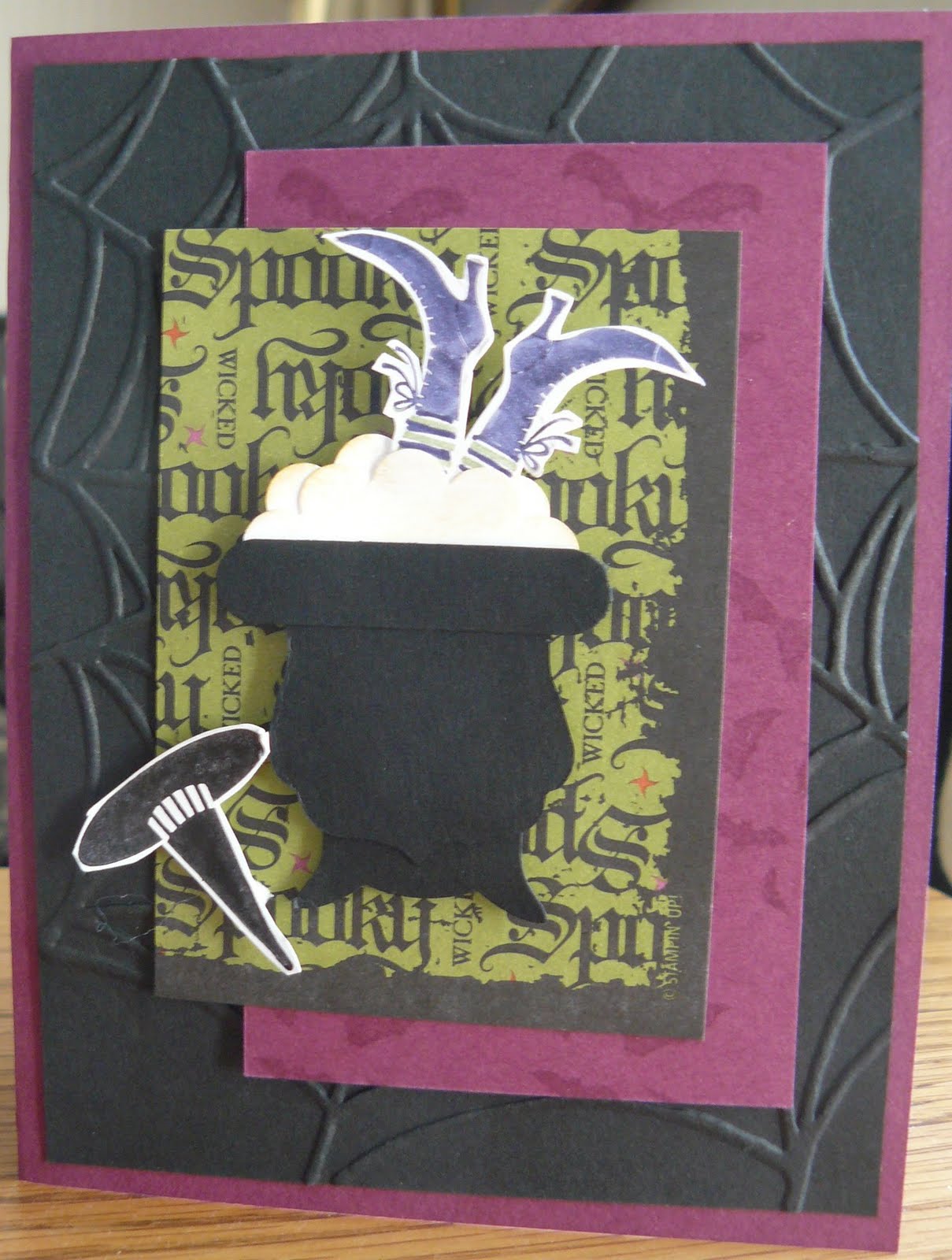 This is one fantastic Halloween card! I love your witch in the cauldron and the embossed spider web. TFS