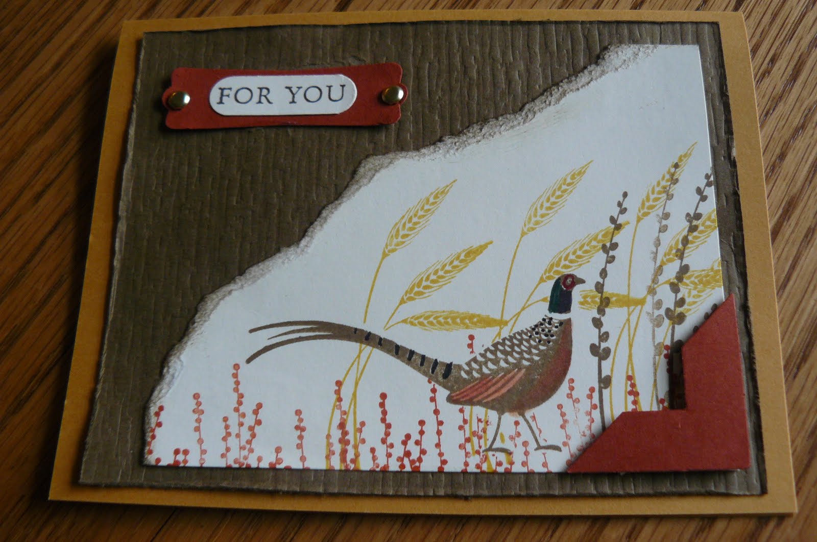 This is the card I made for my husband yesterday. The recipe below will basically explain the card, but again, contact me if you have any questions. I did rough up the edges of the textured brown since wood-grain is a little bit rough in real life.