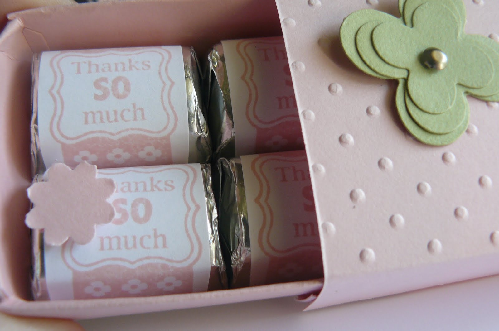 Inside the box is where I used the “Thanks SO Much” stamp — a little boho blossom adhered to one of my nuggets is adorable (IMO!).