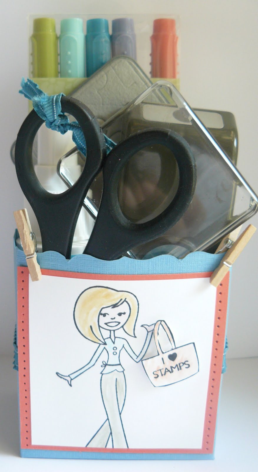 1. The Totally Tess Fancy Favor Box filled with some of my favorite new and not so new “essential” products! This is cased right out of the Catalog and Idea Book on Page 73! I just changed the color of the box, clipped on the new mini clothespins, and filled the box with a few of my favorite items (Paper Snips, a clear block, the Flower Fusion Sizzlet, the new In Color Markers, a punch, and some Stampin’ Mist). I’m submitting this as another sample for Gretchen Barron’s Inspiration in Action Catalog Case Contest found at this post here.