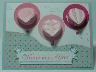 Stamps: Up, Up and Away, Take It to Heart (banner), Loving Thoughts (sentiment in banner), P.S. I Love You (sentiments in the Peekaboo Frames {2}).