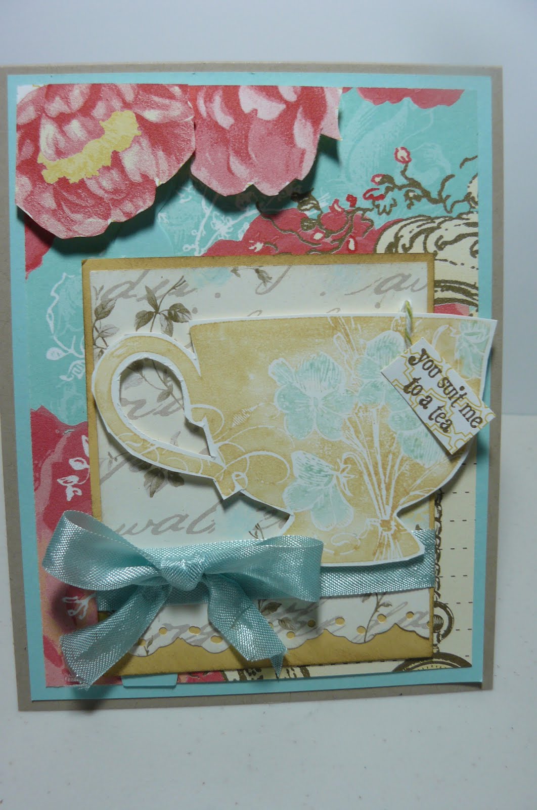 Well, time to share a quick card that I made yesterday in preparation for Mom for Mother’s Day! She loves to drink tea with my dad every afternoon and evening. They’ll now have more time for tea since he’s retiring June 15th after at least 35 years on the farm (including growing up) and 30 years in the store! I used the Tea Shoppe stamp set and the Attic Boutique DSP to create this beautiful card. I was totally inspired by Robin Messenheimer’s card! I didn’t nearly do it justice but I know that my mom will love it regardless!