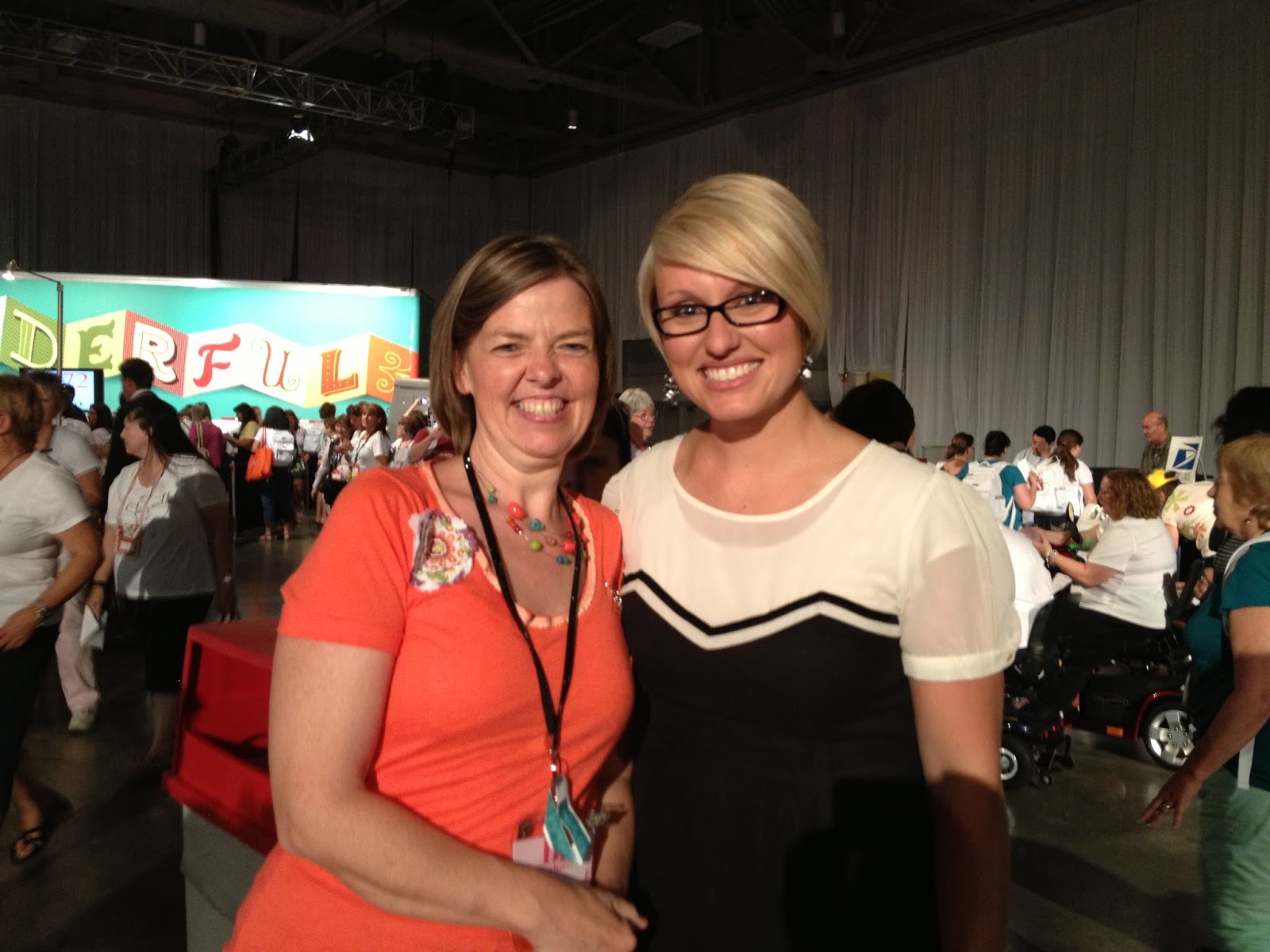 Then, I sat RIGHT BEHIND Patty Bennett! Woohoo! Shout out to Patty — she was as personable in person as she is on her blog! I have a picture that Angela took of all of us (Patty and Cindee Wilkinson, plus me leaning over so it’s not very flattering of me — ignore that!).