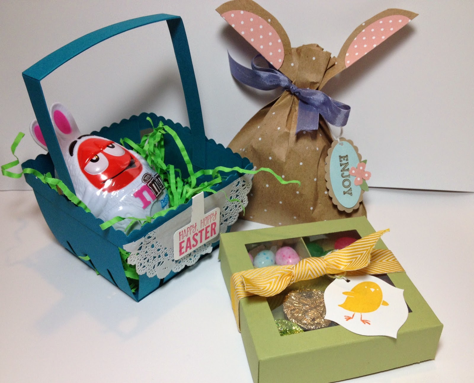 Notice the cute berry basket? I added 1/2 of a Tea Lace Doily and attached a cute tag to the front. Donna Griffith shared this tag trick at Stampin’ Up! Leadership this January — the tag is actually a pick from the Handpicked Framelits Dies collection. Turn it upside down and it makes an adorable hang tag!! I used the For Peep’s Sake stamp set for the tag. The bunny M&M Easter egg was found at my local grocery store and I immediately knew he needed a prominent spot in a basket or box!!