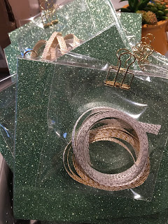Lastly, before everyone left, I gave one more treat: 1 sheet of each color of the Glimmer Paper that was available during the 2nd half of Sale-a-bration (I loved that paper!!), with approx. 2 yards of the gold and silver glimmer ribbon that was available. I packaged it up in the 4″ x 6″ and 6″ x 8″ cello bags with the beautiful gold binder clips! Presentation is everything, but the sparkle inside definitely helped!