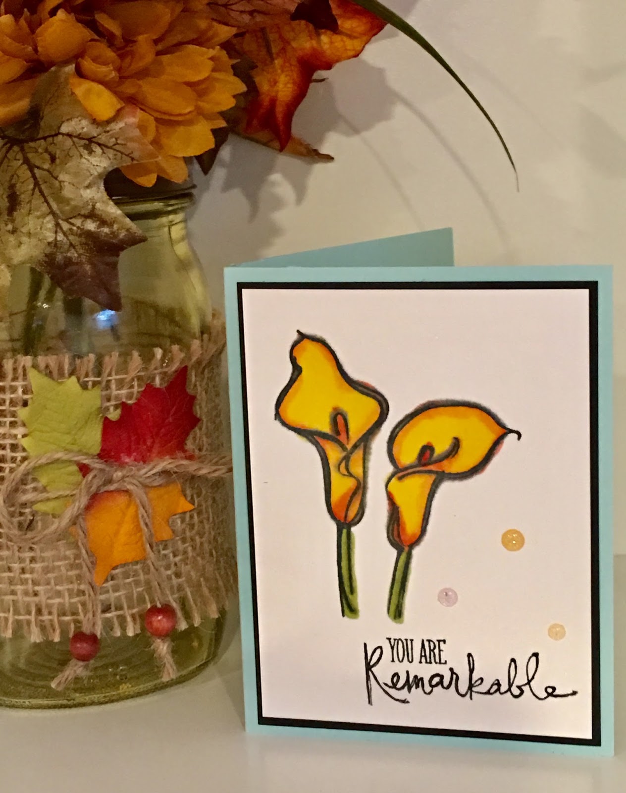 Using Remarkable You, I made a super-quick card with just 3 layers and a couple of embellishments! Since I’m working overnight again tonight and don’t usually create in the middle of a nursing stretch, I’m really excited about how easy the card was, but still looks quite beautiful! I used the new Stampin’ Blends to color the image after stamping it in Tuxedo Black Memento ink on Shimmer White cardstock. An embellishment that I have hardly used at all are the gorgeous Glitter Enamel Dots! Have you used them? Is there an embellishment that maybe you have ignored or “hoarded” because it’s too beautiful?! I challenge you to create a card this week using one of those embellishments. Then … send that card to somebody special! You’ll make their day!