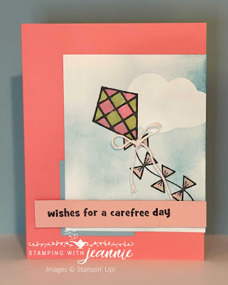 I made the card with that sketch using the Kite Delight stamp set, but then, because it was time for a Facebook Live, I decided that I should make another card but change up the colors.